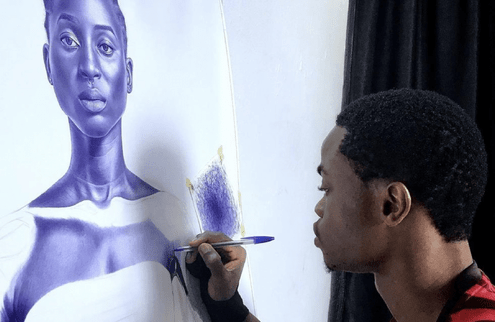 Maduka Emmanuel Onyebuchi (b. 1997) is a visual artist living and working in Imo state, Nigeria. His passion as a ballpoint pen artist comes from an ideological influence of a lifelong obsession with creativity. From tender age, Maduka has always tried to manipulate objects and materials in order to bring up something creative and artistic, then finally choose ballpoint pen as his medium of art which he claims to be another means of writing stories.