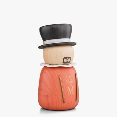 He is the iconic guard of the crown jewels, the yeoman warder, he may look friendly! but if you make a wrong move, he will have you locked up in the tower. Formally dressed, his coat in red-stained solid ash wood is adorned with the royal crest and metal lapel’s. His frilly neck ruffle in white stained wood rests between his coat and his solid maple wood head with his perfectly manicured facial hair. His hat in black stained solid ash wood is detailed with a matching white ribbon.