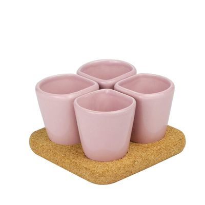 Get together with friends and serve four at a timeEnhance your dining experience with our Copus Set of Four Ceramic Cups. Perfect for espresso shots, delectable mini desserts, or an array of savoury dips, these versatile cups add a touch of elegance to any occasion. Each set includes a sustainable cork base, doubling as a stylish tray and heat-resistant trivet.Embrace creativity by using Copus as charming tiny planters, bringing a natural element to your home decor.Handcrafted with care, these unique cups are available in several stunning colors to match any aesthetic!